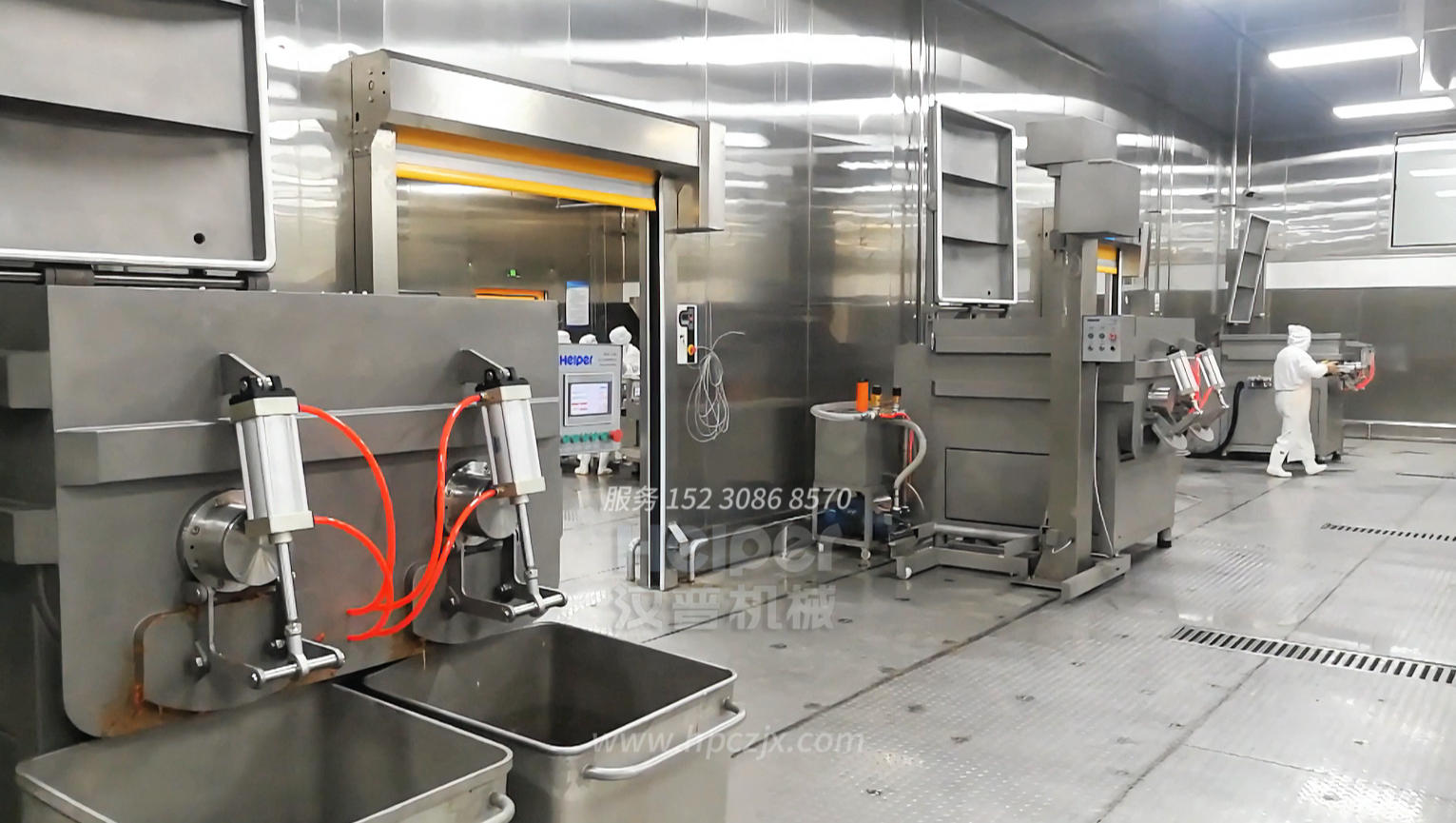 香肠生产线是一种自动化或半自动化的食品加工设备,是用于提高食品加工厂生产效率、标准化地生产香肠产品。通常包括多个环节,从前端原料处理到后端包装,涵盖了香肠制作的整个流程。